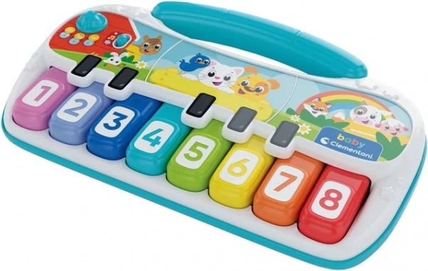 Objevte zábavné dětské pianko se zvířátky CLEMENTONI BABY, které děti intuitivně provede světem hudby. Nabízí 6 hudebních režimů, 8 barevných kláves, učení barev i počítání a praktické madlo na přenášení.