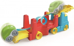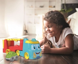 Tento barevný autotransportér CLEMENTONI potěší všechny malé řidiče. V režimu kamionu děti převážejí autíčko a objevují svět reálných vozidel, v režimu dráhy se vůz spustí po trati, převrací se a dělá veselé kotrmelce – radost z hry i učení v jednom.
