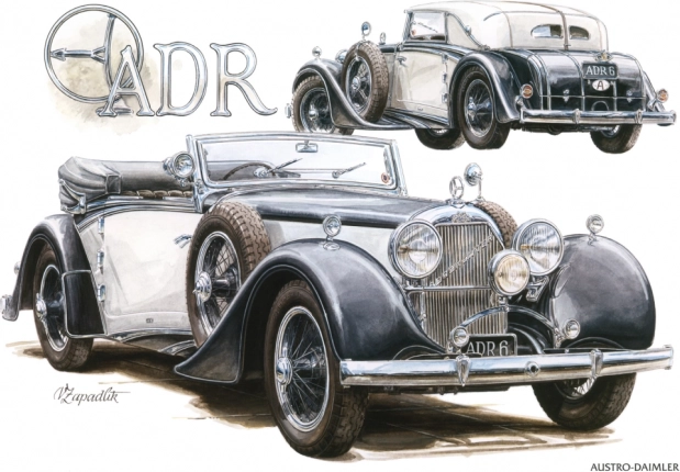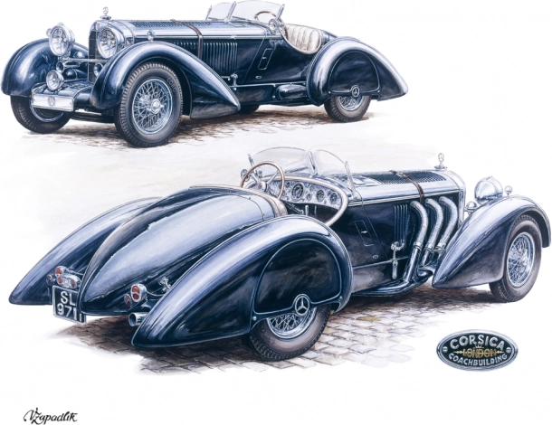 Dvanáct precizních ilustrací klasických automobilů od VÁCLAVA ZAPADLÍKA dodá interiéru styl a sběratelskou hodnotu.