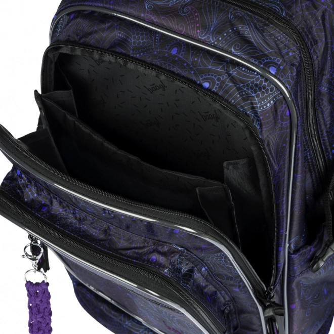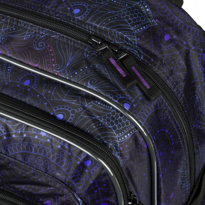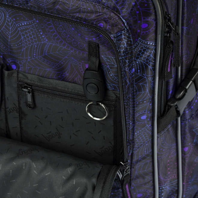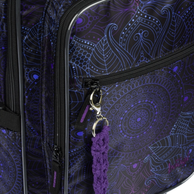 Design s elegantními fialovo-černými motivy doplňuje trendy přívěsek. Batoh nabízí objem 29 l, nosnost 7 kg a byl testován a certifikován v akreditované zkušební laboratoři, takže splňuje nároky na kvalitu i bezpečnost.