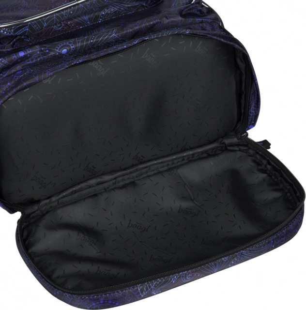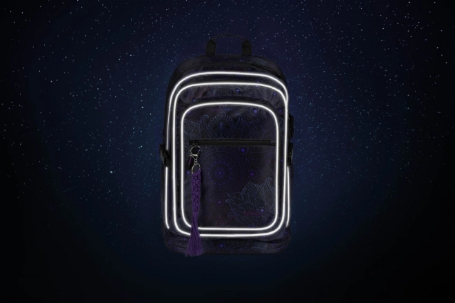 Tři samostatné komory s vnitřním organizérem umožňují přehledné uložení školních potřeb a rovnoměrné rozložení hmotnosti. Vnitřní polstrovaná kapsa bezpečně pojme až 15" notebook či tablet. Přední komora s praktickým organizérem a odnímatelnou karabinou na klíče zvyšuje pohodlí v každodenním provozu. Nechybí vyztužená tajná kapsa na dně, boční kapsy na láhev a bohaté reflexní prvky pro lepší viditelnost.