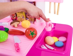 Dřez s tekoucí vodou, otevírací trouba a lednice, hořáky se světlem a zvukem – vše pro autentickou hru na kuchaře.