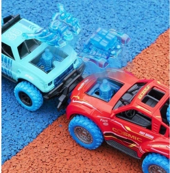 Autíčko Predator 4x4 je ideální pro děti, které milují rychlou jízdu, kaskadérské triky a dramatické kolize. Stačí natáhnout, pustit a sledovat akci – efektní náraz doprovází blikající modro‑červená světla a dynamické zvuky. Kompaktní rozměry usnadňují úchop i přenášení.