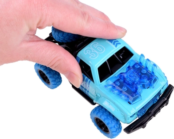 Díky kovové karoserii, gumovým pneumatikám a pevnému plastovému podvozku vydrží hračka dlouhé hodiny hraní doma i venku. Skvělý tip na dárek pro malé fanoušky aut a off‑road dobrodružství.