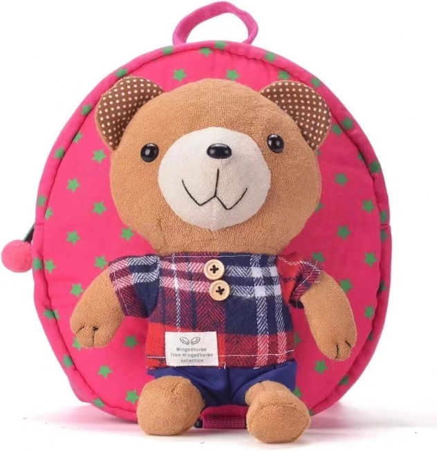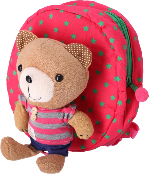 Plyšový medvídek na přední straně promění batůžek v oblíbeného kamaráda na cesty a motivuje děti batůžek rády nosit.