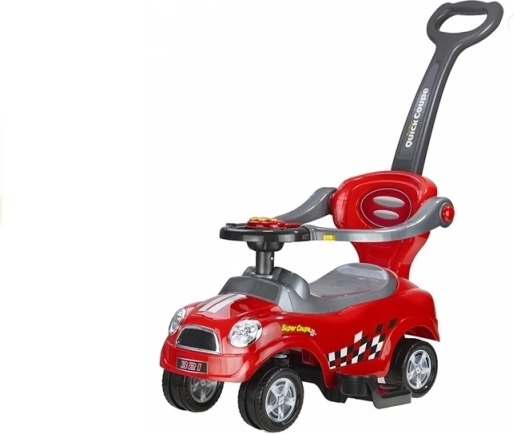 Červené odrážedlo Coupe přináší dětem radost z pohybu a rodičům klid díky promyšleným bezpečnostním prvkům. Dítě může řídit samo pomocí volantu, nebo můžete převzít kontrolu vy pomocí praktické vodicí rukojeti. Lehká plastová konstrukce usnadňuje manipulaci a zajišťuje, že se malý jezdec neunaví příliš rychle.