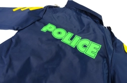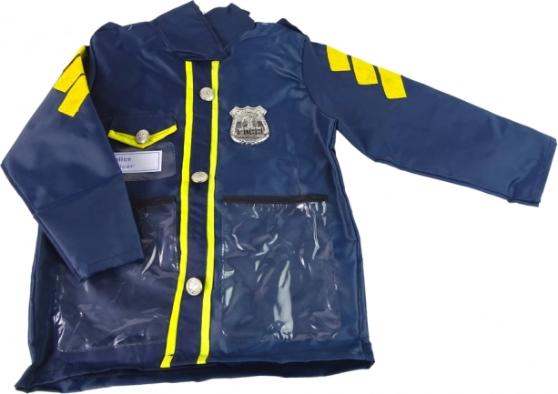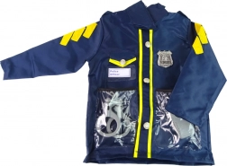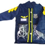 - Kompletní výbava 8 v 1: kabátek POLICE, čepice, odznak, kajdanky, píšťalka, bateriová vysílačka, jmenovka a věšák.