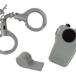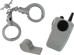 Set obsahuje odznak, kajdanky, píšťalku a jmenovku – vše pro věrohodnou policejní akci při hře.