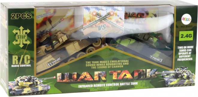 Dva realistické RC tanky s infračerveným bojovým systémem přinášejí napínavou akční zábavu pro dva hráče. Každý tank má délku 44 cm, otočnou věž o 300°, gumové pásy pro skvělou přilnavost a 2.4 GHz řízení bez rušení. Systém životů se čtyřmi indikátory, zvukové efekty motoru a střelby, rychlost až 7–8 km/h a bohaté příslušenství včetně akumulátorů a nabíječek zaručují realistickou bitvu a dlouhou výdrž.