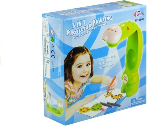 Tento dětský projektor žirafa promítá obrázky na papír nebo stěnu, takže se malí výtvarníci mohou snadno učit kreslit krok za krokem. Ovládání je jednoduché a intuitivní – stačí vložit disk, zvolit motiv a stisknout tlačítko projektoru. Díky nastavitelnému úhlu promítání je vhodný na stůl i pro promítání na stěnu.
