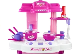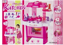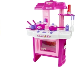 Tato růžovo-bílá kuchyňka pro malé kuchařky a kuchaře přináší realistické zážitky z vaření. Dva samostatně ovládané hořáky se rozsvítí a doprovází je zvuk bublání, zatímco trouba s časovačem po zapnutí blikne světlem a po uplynutí času se sama vypne. Děti si tak bezpečně vyzkouší „skutečné“ vaření a pečení.