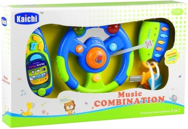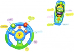 Naše interaktivní sada pro děti zahrnuje volant, telefon a klíče. Každá část je vyrobena tak, aby se snadno vešly do malých dětských ručiček a poskytovaly zábavnou a vzdělávací hru.