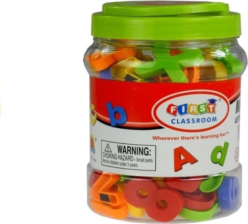 Velká dóza skrývá 79 magnetických písmenek, číslic a matematických znaků, což z ní činí vynikající nástroj pro učení, který děti mohou použít při hře. Praktická edukační hračka usnadňuje výuku vytváření jednoduchých výrazů nebo matematických úkony.