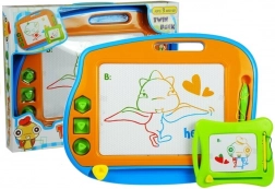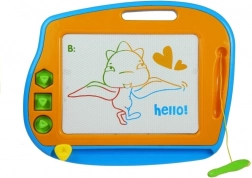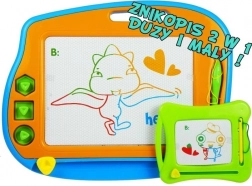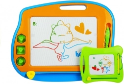 Magnetická tabule Zmizík 2v1 je ideální hračkou pro děti od tří let, která nabízí nekonečnou zábavu a rozvíjí jejich představivost. Sada obsahuje velkou a malou tabuli, které jsou lehké a snadno přenosné díky praktickému úchytu. Rucování na tabuli je snadné díky železným pilinám pod povrchem obrazovky, které tvoří krásné, barevné kresby se speciálním perem, které je připevněno na šňůrce.