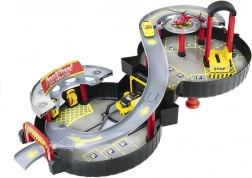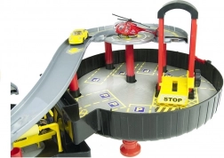Součástí sady jsou 2 malá autíčka a vrtulník, nechybí spirálové rampy, parkovací místa a plocha pro přistání. Realistické doplňky podporují fantazii, role-play i rozvoj jemné motoriky.