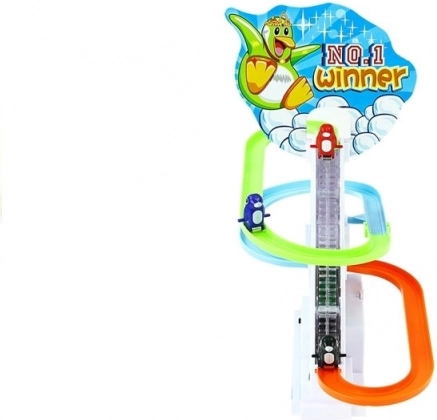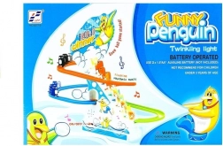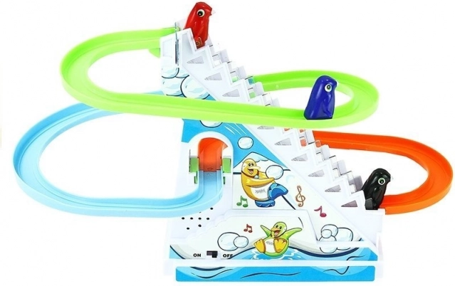 Pingvínci se sklouzávají po dráze, zatímco hraje veselá melodie, což zajišťuje hodiny radosti a zábavy pro malé děti.
