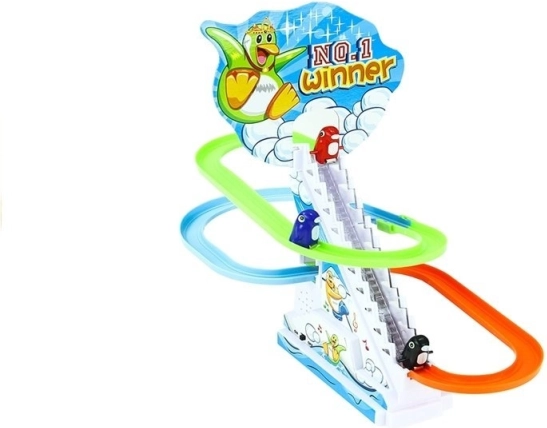 Tento hrací set s pohyblivými schody nabízí interaktivní hru, kde pingvínci sklouzávají po dráhách, zatímco zní rytmická melodie. Bezpečná hračka je navržena s ohledem na nejmladší děti, které milují barevné a živé zábavy.