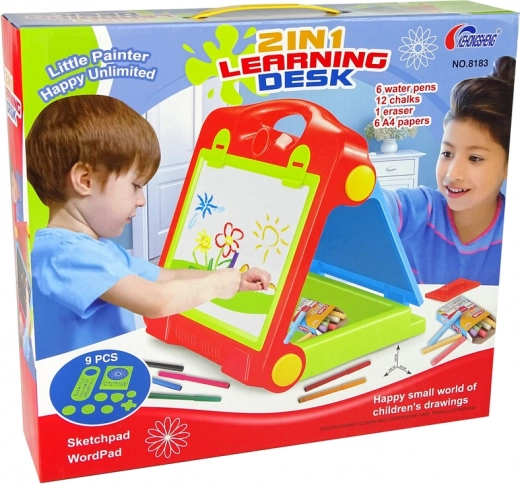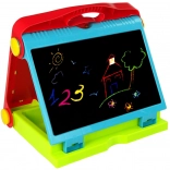 Skládací dětská tabule 2v1 je ideálním nástrojem pro rozvoj uměleckého cítění a kreativity u dětí. Může ji využívat až dvě děti současně, což podporuje týmovou spolupráci a sdílení nápadů. Tabule obsahuje praktický set příslušenství.