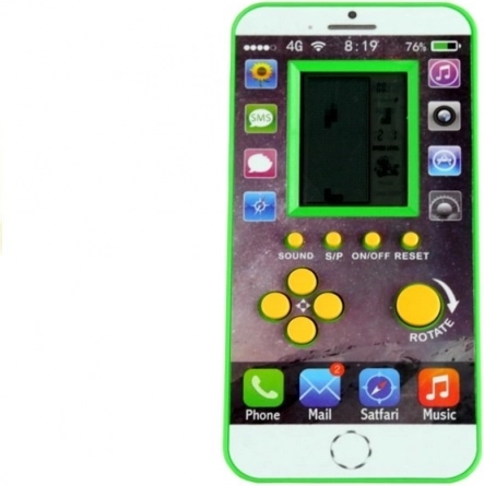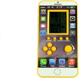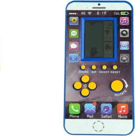 Tato kapesní elektronická hra ve tvaru telefonu nabízí klasickou hratelnost TETRIS s malým displejem a intuitivními tlačítky (šipky, Rotate, Sound, On/Off). Díky kompaktním rozměrům ji snadno schováte do kapsy nebo batohu a máte ji vždy po ruce.