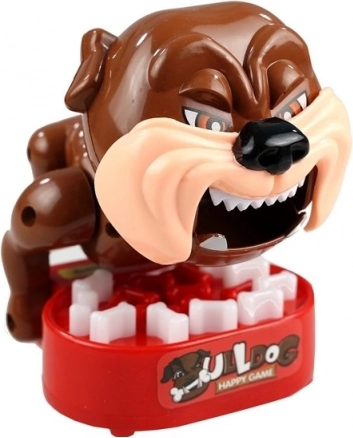 Kousající buldok je jednoduchá, ale překvapivě napínavá stolní hra pro malé i velké. Nastavte buldokovi hlavu, posaďte ho na zadní tlapky a postupně zkoušejte „krást“ kosti. Nikdy nevíte, kdy po vás bleskově chňapne – rozhoduje štěstí, rychlost a odvaha.