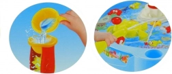 Tekoucí voda roztáčí žlutý mlýnek a vytváří malý vodopád. Děti objevují principy příčina–následek a trénují jemnou motoriku při nalévání vody.