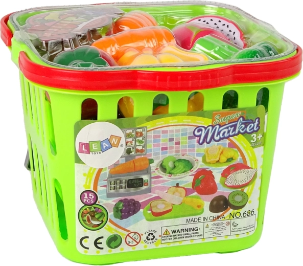 Tato kreativní sada v zeleném košíku nadchne pestrými barvami a realistickými doplňky. Plastové ovoce a zelenina se díky suchým zipům snadno rozpojí i znovu spojí, takže děti mohou trénovat motoriku i představivost. Obchodní váha zpestří hru na obchod a naučí základy vážení.