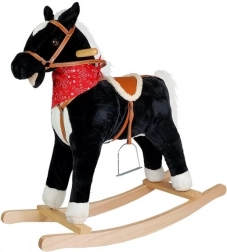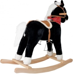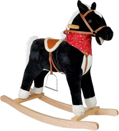 Objevte kouzlo Divokého západu s tímto černo‑bílým houpacím koníkem! Díky realistickým zvukům řehtání a cvalu, pohyblivé tlamě a ocasu a stabilním dřevěným madlům si děti užijí bezpečnou a podnětnou zábavu. Měkký plyš, sedlo se třmeny a výška 74 cm zajišťují pohodlné houpání i rozvoj rovnováhy a motoriky.