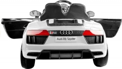 Dětský model Audi R8 je verze stylisticky příbuzná s modelem roadster, který se vyznačuje dvěma sedadly, žádnou pevnou střechou a sportovním temperamentem. Další zajímavostí je také neutrální bílá barva karoserie, díky níž je na ulici těžko přehlédnutelný. Miniaturní verze Audi R8 Spyder je stejně jako její plnohodnotný protějšek vybavena fantasticky vypadajícími reflektory se svítícími LED diodami, stejně jako tónovaným čelním sklem a masivní vysokou mřížkou chladiče.