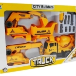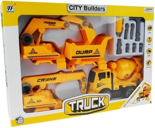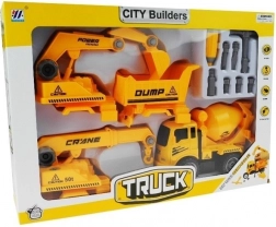 Tato zábavná sada je ideální pro malé kutily, kteří milují stavební vozidla. Obsahuje čtyři základní stavební vozidla: betoniarka, vyklápač, jeřáb a bagr. Každé vozidlo lze snadno rozmontovat a znovu sestavit pomocí praktického šroubováku s vyměnitelnými koncovkami, což podporuje rozvoj manuálních dovedností.
