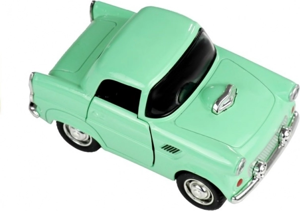Autíčko se pyšní kovovým zpracováním a detaily napodobujícími klasické automobily, které dodávají autentický vzhled.
