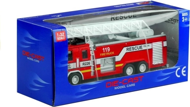 Miniaturní model v měřítku 1:32 nabízí realistické detaily, které se blíží opravdovému hasičskému vozu.