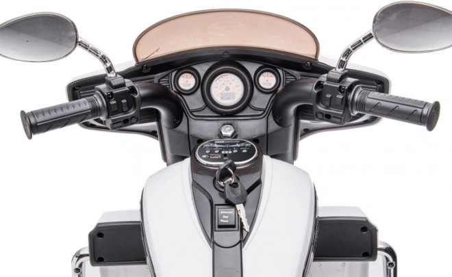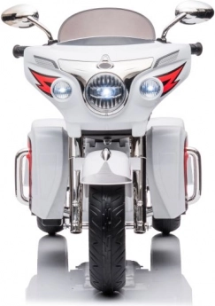 Objevte radost z jízdy s dětskou elektrickou tříkolkou inspirovanou stylem GOLDWING. Robustní konstrukce, dva široké zadní pneumatiky a pohodlné madla zajišťují stabilitu a jisté řízení. Díky atraktivnímu designu s čelním štítem, zrcátky a realistickými světly si děti užijí spoustu zábavy i rozvoj motoriky a rovnováhy.