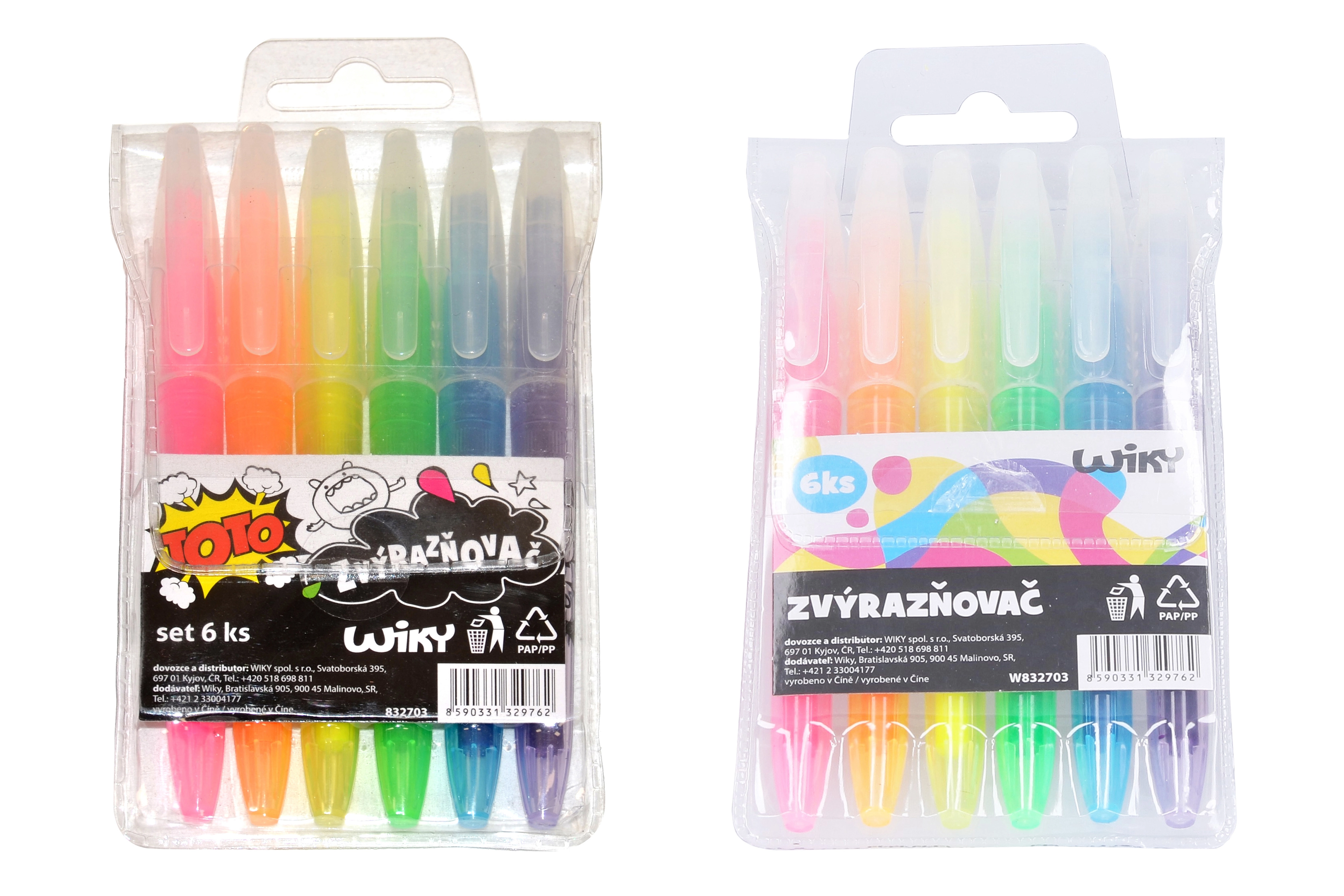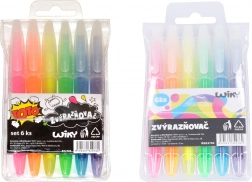 Sada barevných zvýrazňovačů je praktickou pomůckou jak do kanceláře, tak i do školy. Určené pro zvýraznění textů na všech druzích papíru. zavírací vršek klínový hrot Balení obsahuje 6 barev - růžová, oranžová, žlutá, zelená, modrá, fialová.
