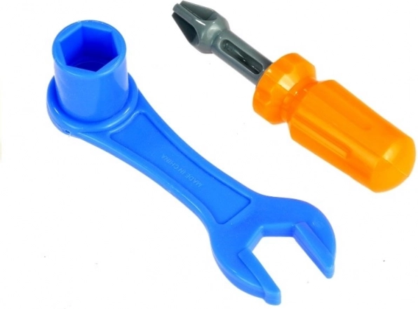 Klíč a šroubovák podporují jemnou motoriku a přicházejí přirozeně s hračkou.