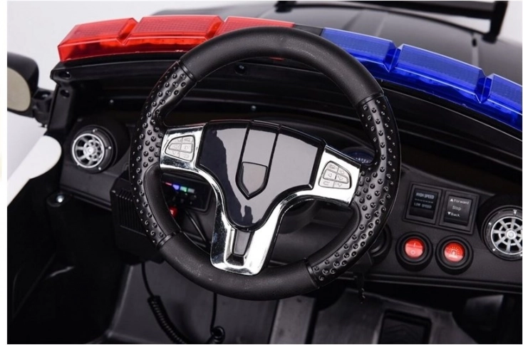 Realistické policejní auto pro děti přináší atraktivní vzhled s modro‑červeným majákem, tmaveným čelním štítkem a stylovými polepy. Díky dvěma motorům 2x20 W a akumulátoru 12V 4,5Ah si malý řidič užije plynulou jízdu rychlostí 3–5 km/h. Automatická převodovka se 3 úrovněmi rychlosti umožní přizpůsobit tempo věku a dovednostem dítěte.