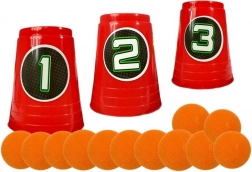 Součástí balení je 12 měkkých kuliček a několik číslovaných kelímků pro vylepšení cílení a strategické hry. Design v bílo-oranžové barevnosti dodává výrobku moderní vzhled, zatímco poloprůhledný zásobník umožňuje snadno sledovat množství dostupné munice.