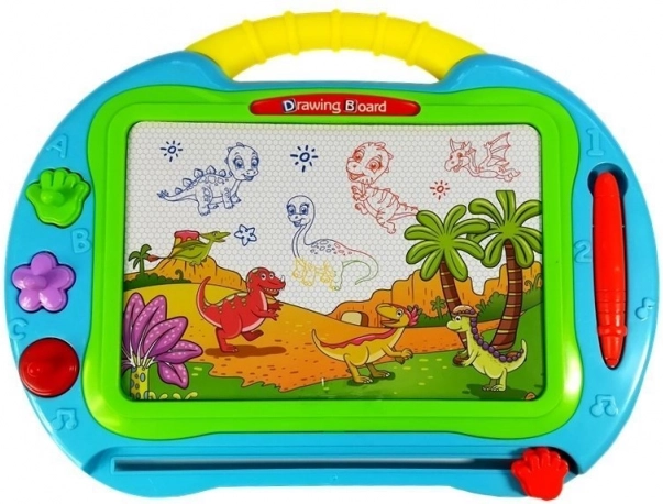 Tabulka má multibarevnou obrazovku, příjemnou tyrkysovou barvu a praktickou rukojeť pro snadné přenášení. Je skvělá na doma, na cesty i do čekáren – děti zabaví a současně podpoří rozvoj kreativity, soustředění a manuální zručnosti.