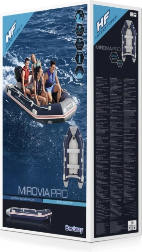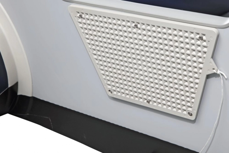 Díky 3 samostatným vzduchovým komorám člun lépe vyvažuje a v případě poškození jedné komory zůstává stabilní. Ocelové tažné kroužky, bezpečnostní obvodové lano a praktické úchyty usnadňují manipulaci i nastupování z vody. Na mořské překližkové zrcadlo lze připevnit přívěsný motor až 15 HP (motor není součástí balení).