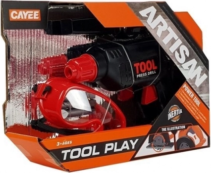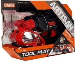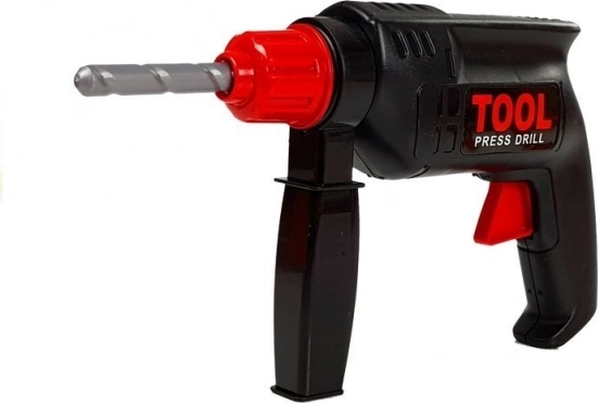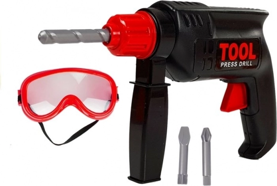 Po stisku spouště se výměnné vrtáky otáčejí, takže děti mohou bezpečně „vrtat“, šroubovat a trénovat zručnost bez rizika. Součástí sady jsou i ochranné brýle pro nácvik správných návyků bezpečné práce. Výrobek je z kvalitního, atestovaného plastu a splňuje CE.