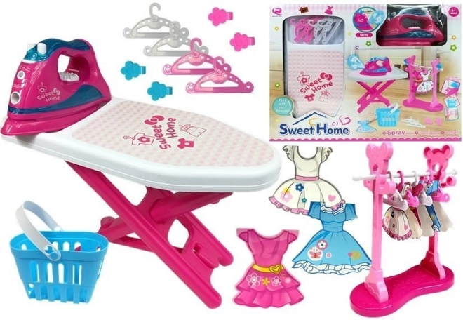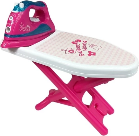 Žehlicí prkno a plastová žehlička s 'Sweet Home' potiskem přináší autentickou zábavu.