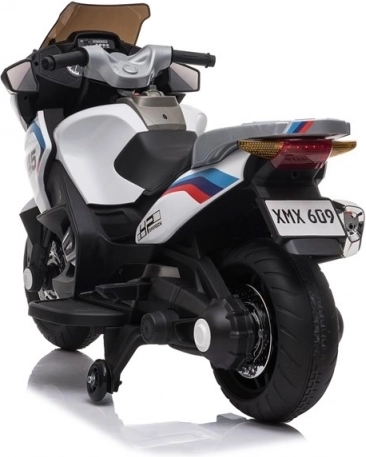 Motorka je vyrobena z odolného plastu ABS, obsahuje imitaci chromovaných prvků a je vybavena bočními kolečky pro snazší vyvážení malých jezdců. Jízda na této motorce je snadná a zábavná.