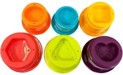 Hrnečky s otvory umožňují hru ve vodě, kdy se lze těšit na různé proudy vody a tím dělají z času koupele radostný zážitek. Děti starší šesti měsíců tento produkt milují.