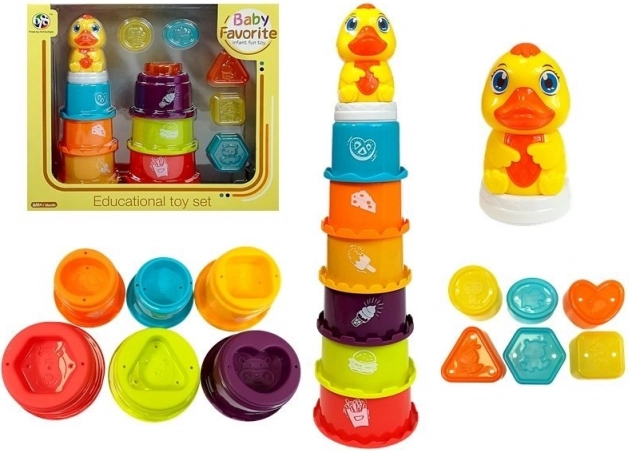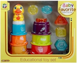 Edukační pyramida je ideální pro rozvíjení dovedností vašeho dítěte. Díky šesti pestrobarevným hrnečkům a kachničce na vrcholu, je každý moment hrou příležitostí ke zlepšení motoriky a koordinace. Můžete ji používat doma, na pláži nebo v koupelně. Kubíčky mají různé značky podporující poznávání potravin a tvarů. Objevte různé možnosti, jak využít tuto hračku pro stimulaci rozvoje dítěte.