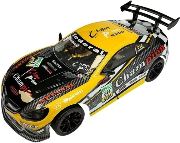 Výkonné RC sportovní auto v měřítku 1:10 přináší realistické závodní zážitky doma i venku. Díky ovládání na frekvenci 2,4 GHz si užijete plynulé řízení bez rušení, měkké gumové pneumatiky zajišťují skvělou přilnavost a odolná karoserie z PVC zvládne nárazy i nízké teploty. Součástí je dobíjecí akumulátor s nabíječkou.
