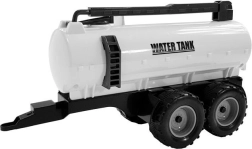 Bílá cisterenová vlečka s robustními koly pro plynulou jízdu. Perfektní pro realistické scénáře zavlažování na farmě.