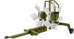 Zeleno‑bílý zhrabovač s otáčivými prsty učí děti principy sběru trávy či sena a rozšiřuje možnosti hry.