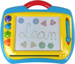 Tato zábavná edukativní hračka funguje na principu kovových částeček ukrytých pod povrchem obrazovky. Při kreslení magnetickým stylusem se částice uspořádají do obrázku, který snadno smažete posuvníkem a můžete začít znovu. Velká tabule nabízí kreslení ve čtyřech barvách, menší tabule je v černobílém provedení – ideální kombinace pro domácí tvoření i cestování.