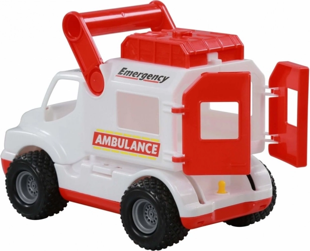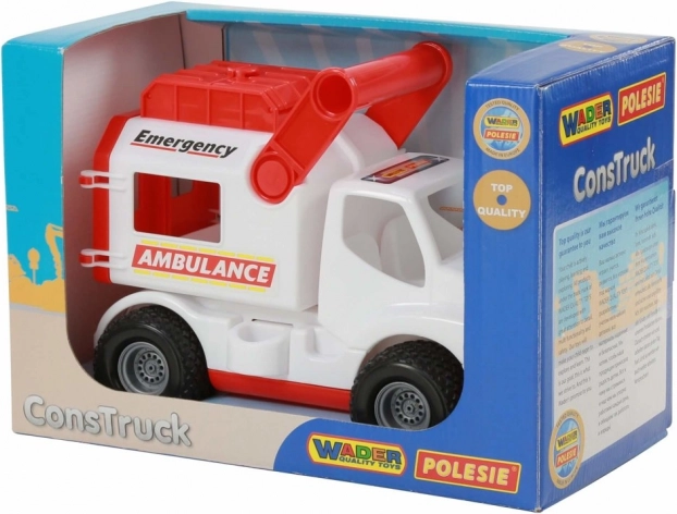 Hasičské auto Construck je ideální hračkou pro nejmenší, která pomáhá dětem poznávat svět kolem sebe. Tento ambulance vůz, s potisky ukazujícími veřejné služby, podporuje rozvoj přesnosti, úchopu a logického myšlení u dětí. Jeho otvírací prvky, červené zadní dveře a horní úložný prostor umožňují dětem schovávat poklady nebo figurky. Díky blokaci na straně auta je přívěs stabilní a po jejím uvolnění je mobilní, což umožňuje zážitek z přepravy.