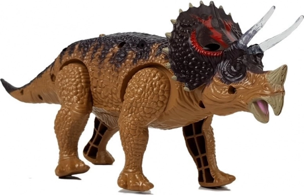 Realisticky zpracovaný dinosaurus Triceratops přinese do dětského pokoje pořádnou dávku dobrodružství. Po vložení baterií a stisknutí tlačítka na hřbetě začne dinosaurus kráčet, hýbat čelistí i předními končetinami, řvát a aktivují se červeně svítící oči. Hnědé, přírodně laděné zbarvení a detailní textura podporují představivost a učení o pravěkých zvířatech.