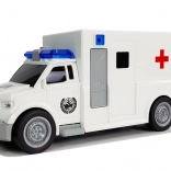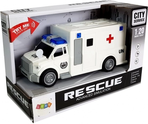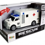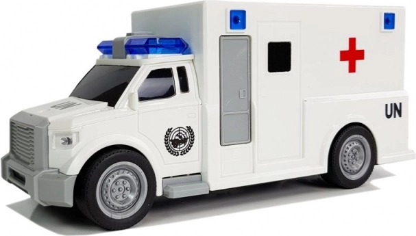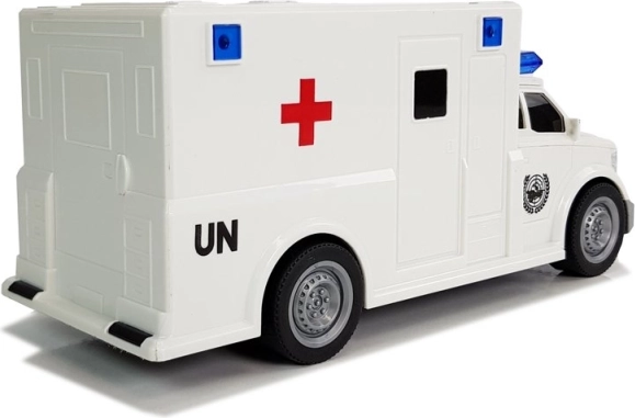 Tato interaktivní sanitka je skvělou hračkou pro děti, které milují akci a záchranářské mise. Realistické zpracování a funkční detaily pomáhají rozvíjet fantazii i motoriku. Stiskem tlačítka na střeše se aktivují světla a zvuky, frikční pohon umožní vozu vyrazit vpřed bez nutnosti bateriového pohonu kol.
